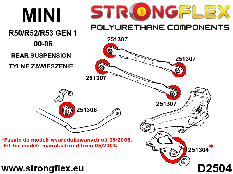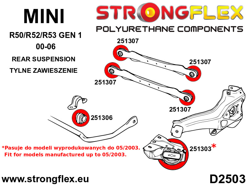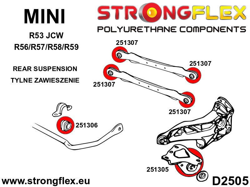 Strongflex Mini R50, R52, R53 (2000–2006) Hátsó Stabilizátor Szilent – 251306B_18mm