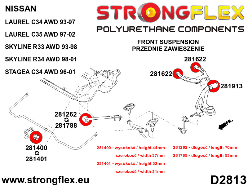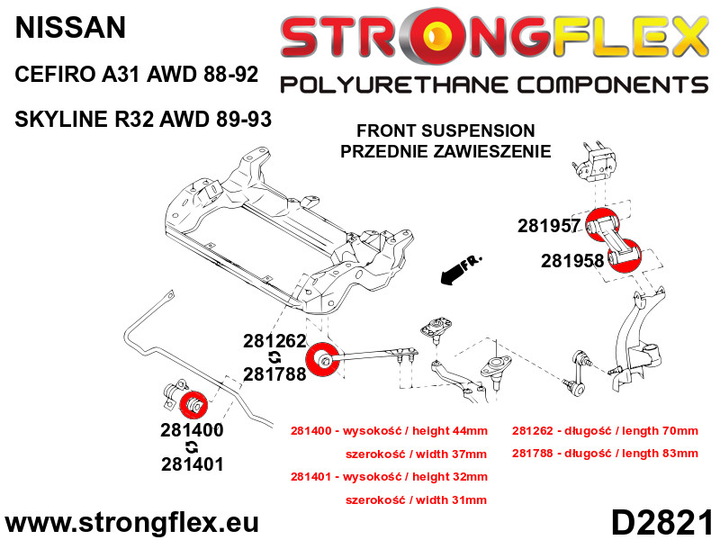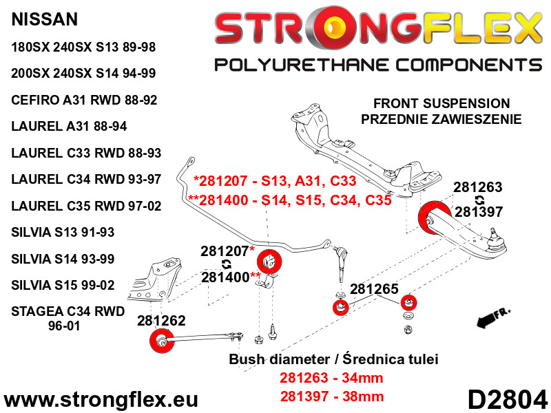 281262A: Front lower radius arm to chassis bush SPORT Yellow