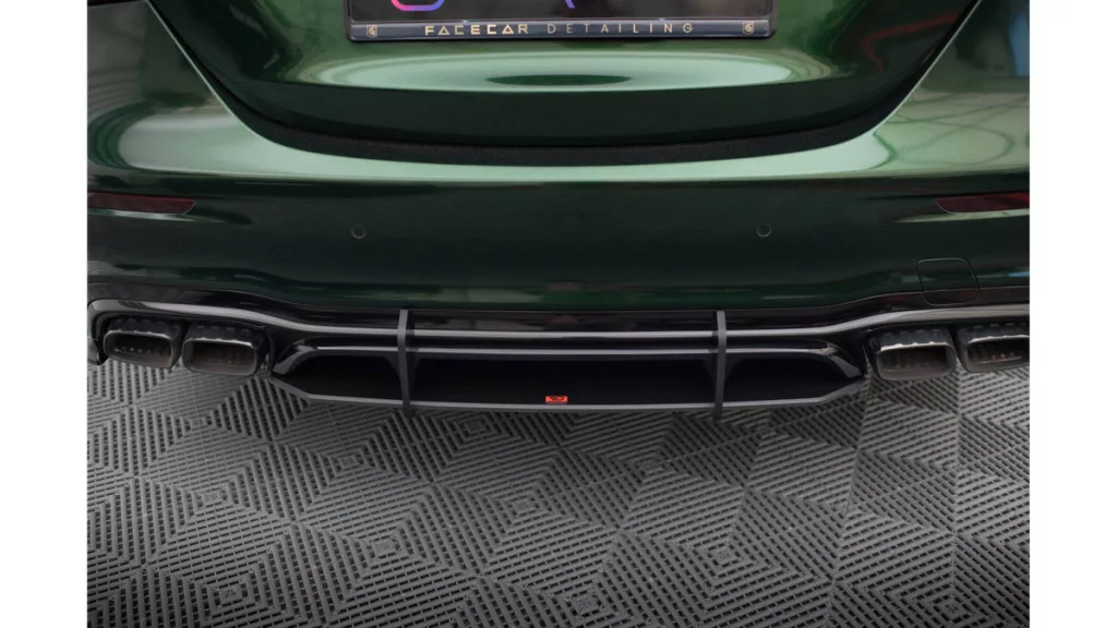 The rear diffuser Street Pro for the Mercedes - AMG E63 W213 Facelift is a tuning part in the tuning process that was made of ABS material. The mentioned material has an increased resistance to moisture and will not deform unsightly as a result of extremely low or high temperatures. ABS is a flexible and durable material that is certified by the TUV MATERIALGUTACHTEN certificate. Thanks to the mentioned properties, ABS is willingly used in the automotive industry, not only for the production of tuning parts, but also for standard car equipment.
