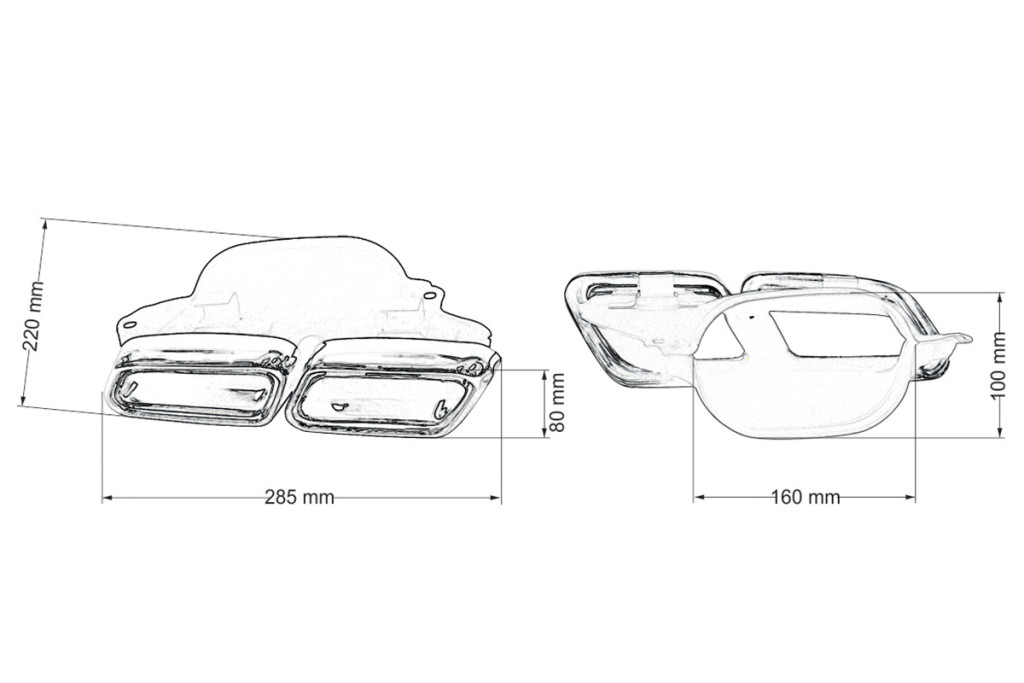 Exhaust Tip 285x80mm enter 160x100mm Mercedes W212 Polished Set