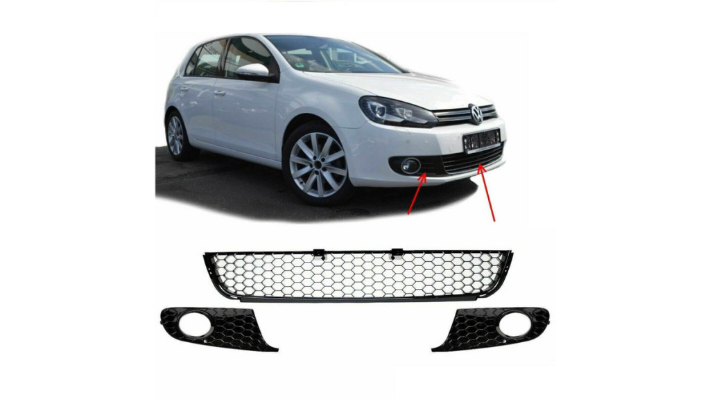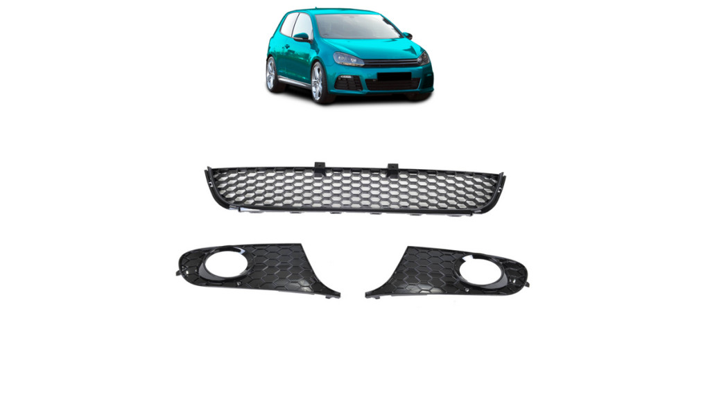 Upgrade the appearance and protection of the front end of your VW GOLF VI with this set of Front Bumper Mesh Grilles, offering a durable and stylish solution for 2008-2012 models.