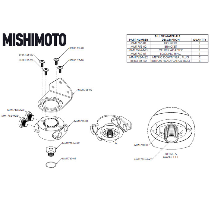 Remote Oil Filter Head M22x1.5 Thread Black Mishimoto