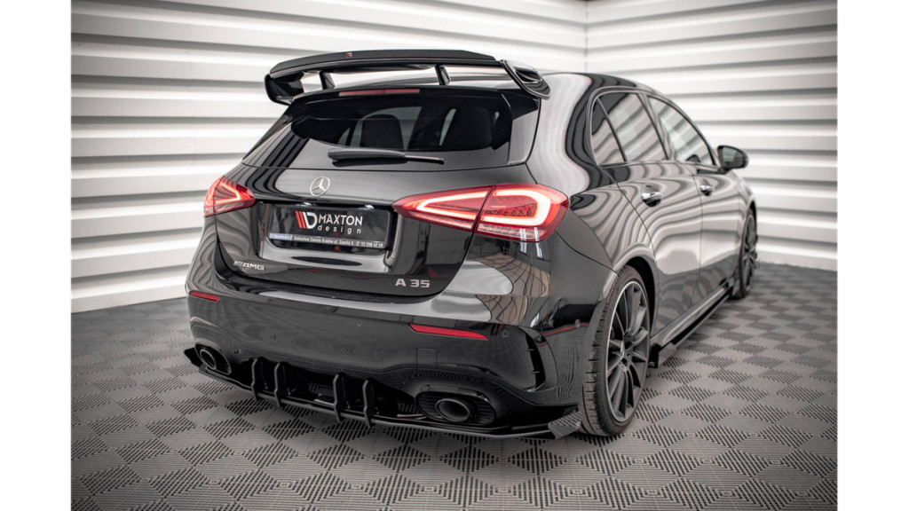 Maxton Design Hátsó Kötény / Diffúzor Mercedes-Benz A35 AMG W177 (2018–) – Piros + Fényes Fekete